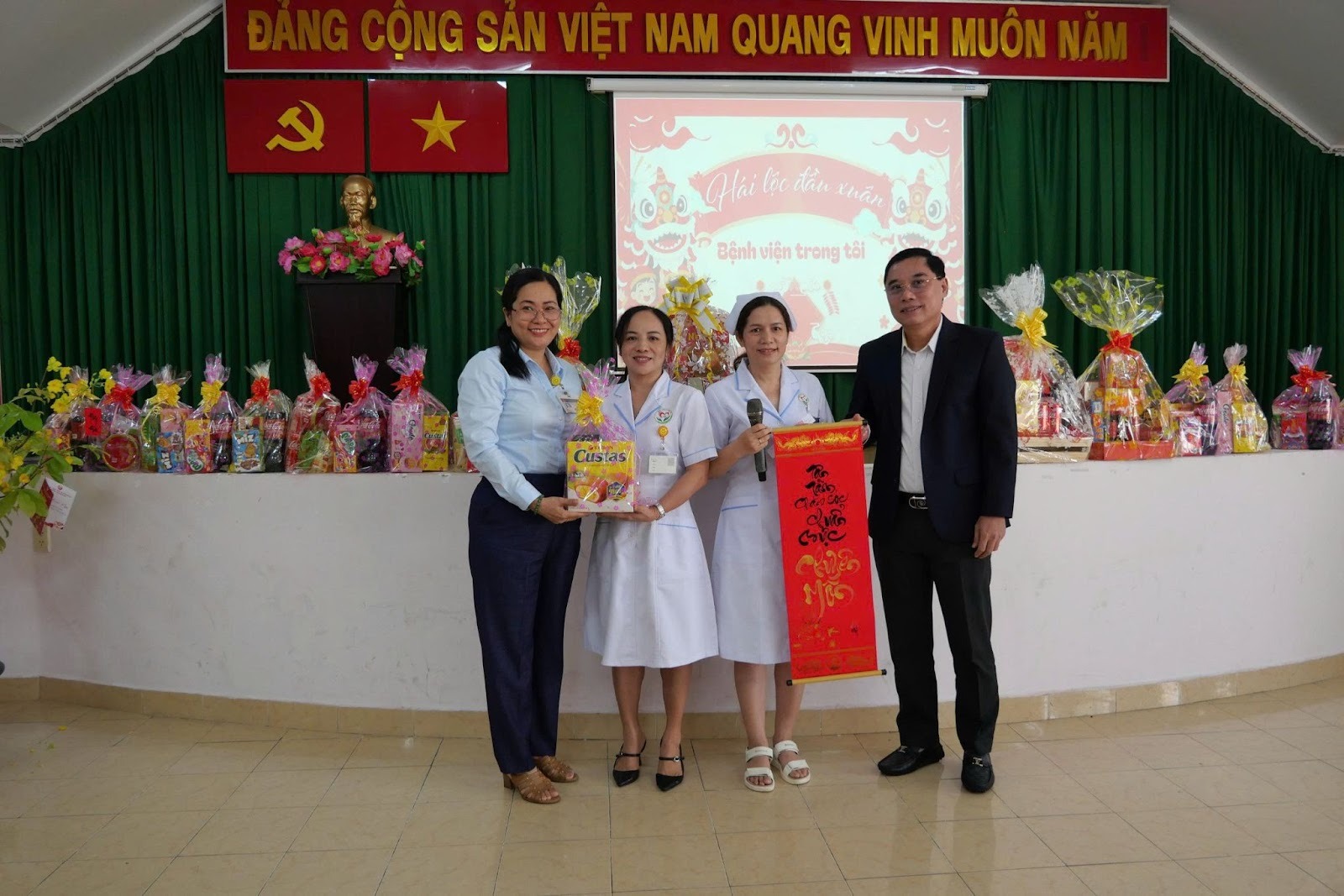 TTƯT. BSCK2 Nguyễn Khoa Lý ( áo vest) trao lì xì đầu năm, gửi lời chúc may mắn và động viên tinh thần viên chức, người lao động nhân dịp xuân Bính Ngọ 2026.