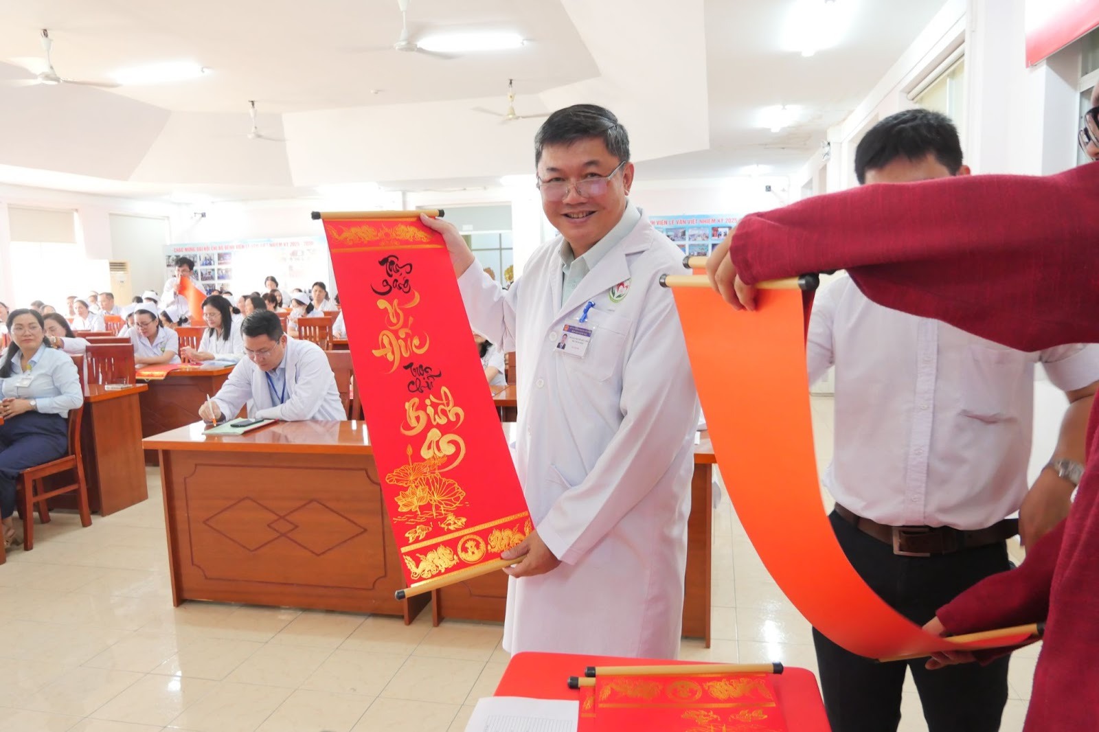 Trong chương trình, đại diện các khoa, phòng đã tham gia hoạt động gửi gắm “Thông điệp đầu năm” và “Bệnh viện trong tôi - Hái lộc đầu xuân”, chia sẻ những mục tiêu và kỳ vọng cho năm 2026. Các lời chúc và thông điệp được Thầy đồ thể hiện bằng nét bút thư pháp ngay tại hội trường, tạo nên không khí xuân ấm áp và mang đậm nét truyền thống. Những thông điệp đầu năm thể hiện tinh thần đoàn kết, trách nhiệm và quyết tâm xây dựng Bệnh viện Lê Văn Việt ngày càng phát triển.