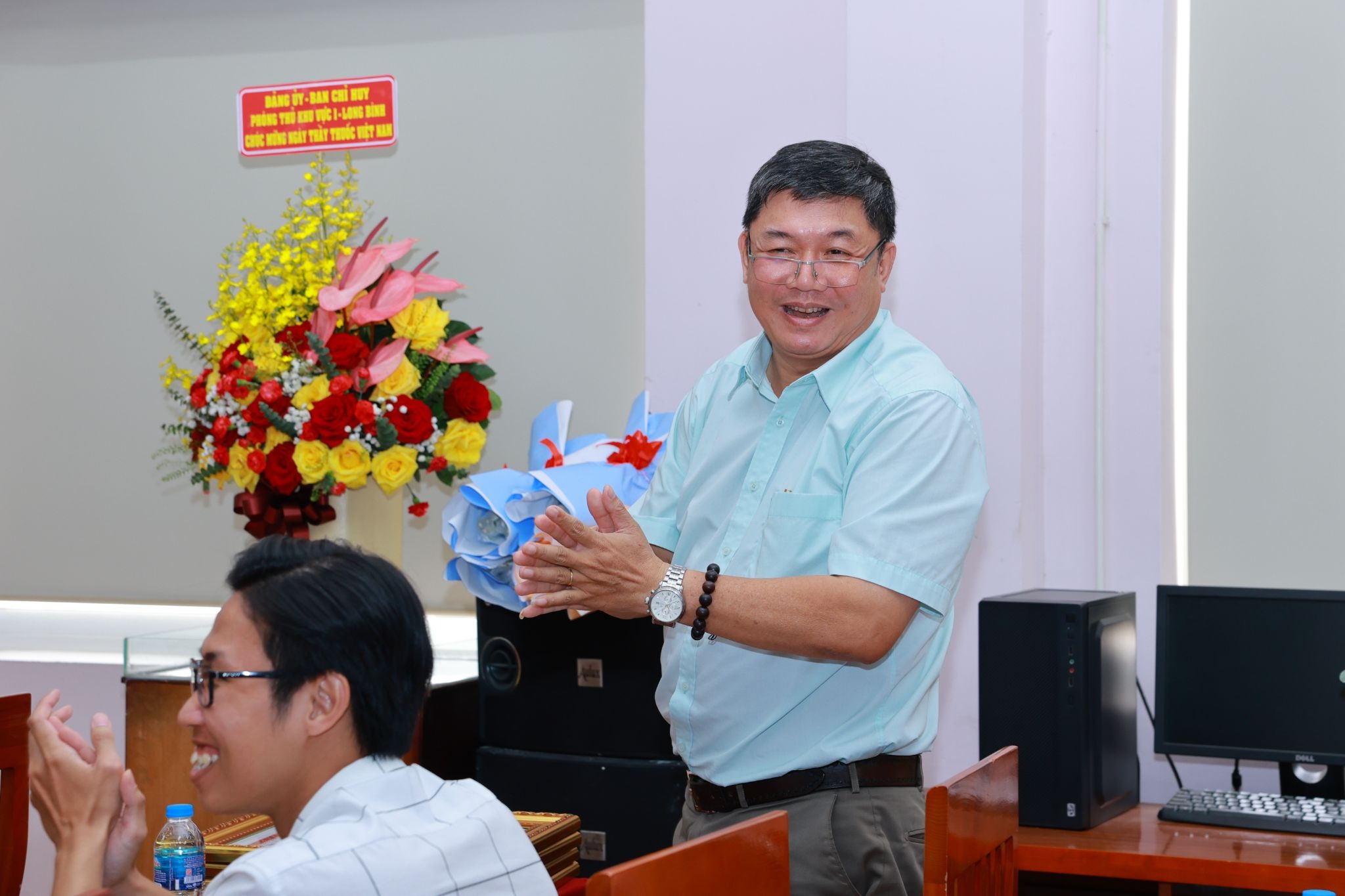 DS.CK2 Nguyễn Hữu Tiến, Trưởng khoa Xét nghiệm đón nhận thông tin Khoa Xét nghiệm Bệnh viện Lê Văn Việt đạt chứng nhận ISO 15189:2022, niềm vui chung của bệnh viện và tập thể khoa.