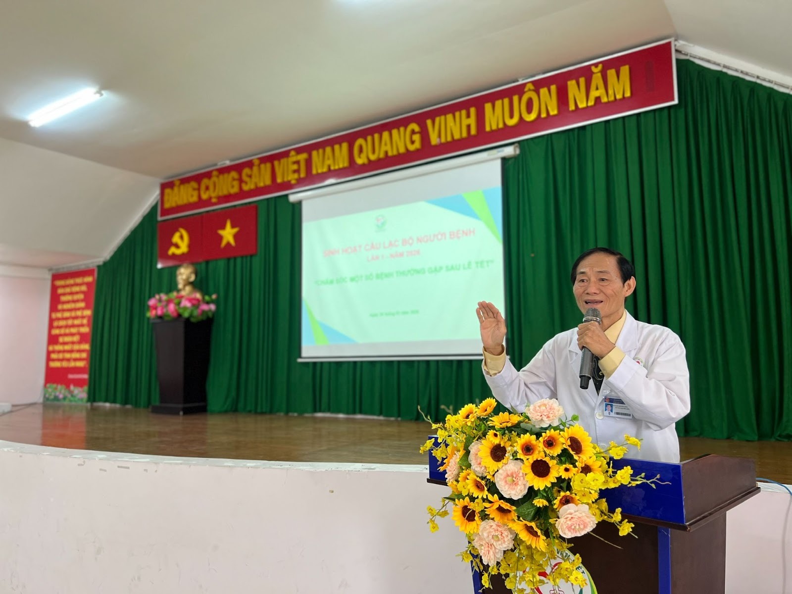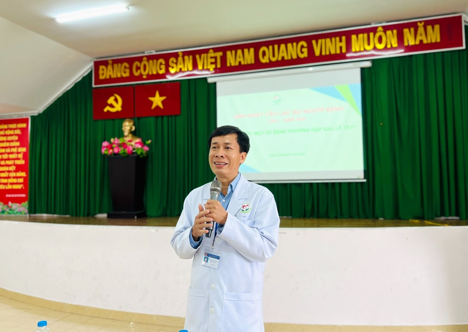 Tại buổi sinh hoạt, người bệnh được lắng nghe các chuyên đề thiết thực từ đội ngũ bác sĩ của bệnh viện. BSCK2. Nguyễn Văn Chức, Phó Giám đốc Bệnh viện trình bày chuyên đề “Tổng quan các bệnh thường gặp sau dịp Lễ Tết”.