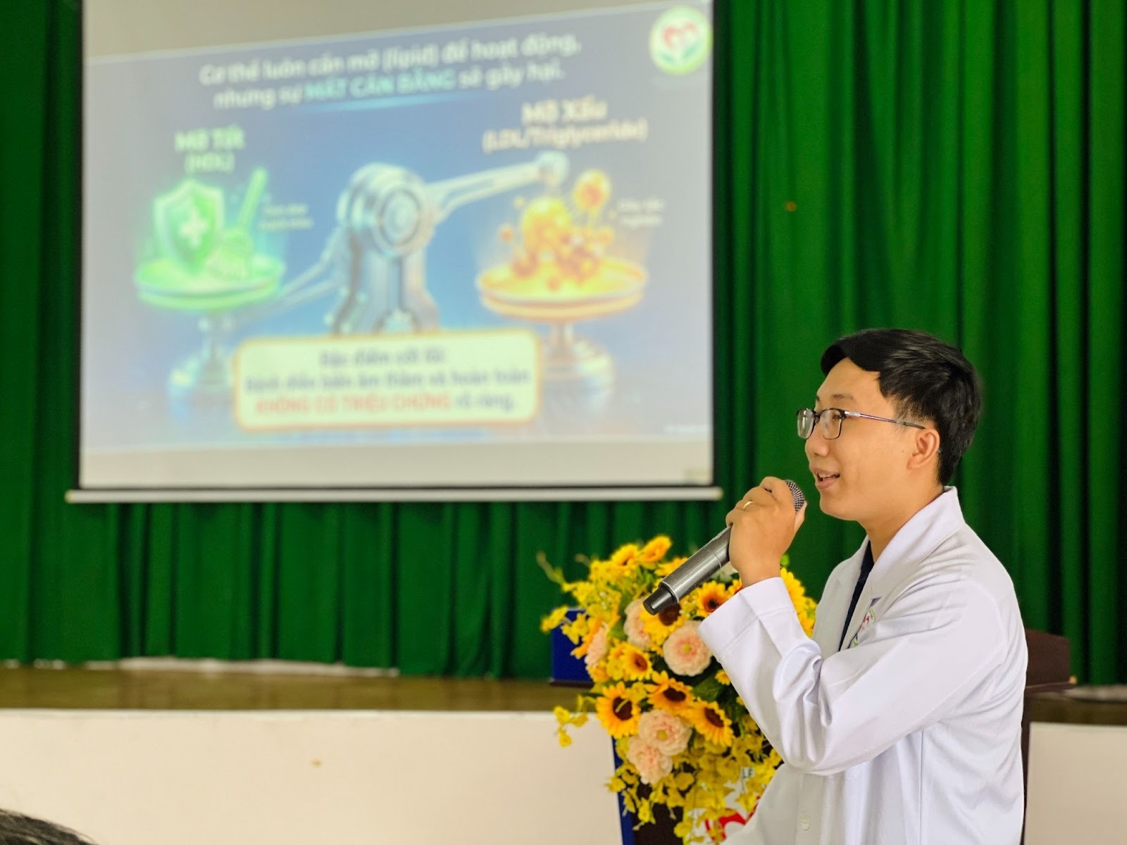 BSCK2. Nguyễn Văn Chức, Phó Giám đốc Bệnh viện nhấn mạnh nguy cơ rối loạn tiêu hóa, bệnh lý tim mạch, đột quỵ và sự cần thiết của việc kiểm soát bệnh mạn tính, duy trì lối sống lành mạnh.