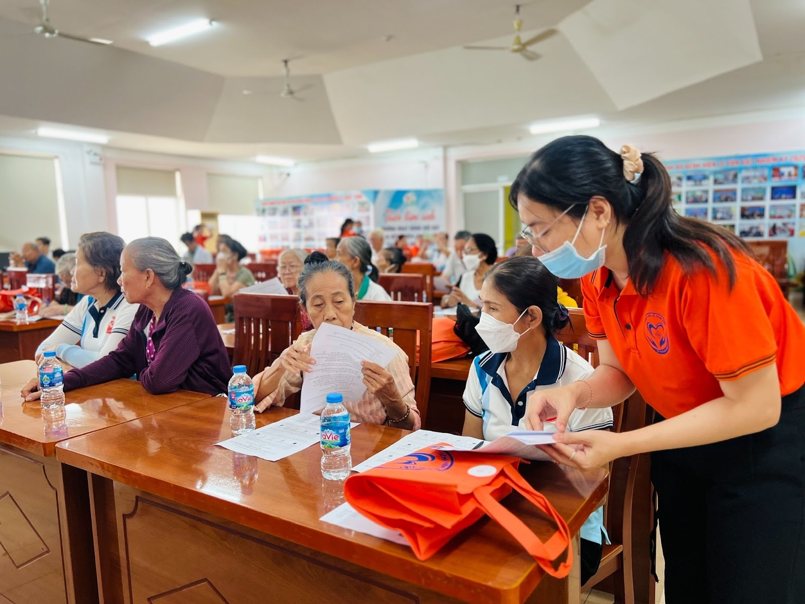 Trong buổi sinh hoạt Câu lạc bộ người bệnh lần 1 năm 2026 với chủ đề “Chăm sóc một số bệnh thường gặp sau Lễ Tết”, trước khi bước vào phần chia sẻ chuyên đề, người tham dự được đo huyết áp, tư vấn dinh dưỡng miễn phí và trao đổi trực tiếp với nhân viên y tế. Thông qua các câu hỏi khảo sát, đội ngũ y bác sĩ nắm bắt tình trạng sức khỏe, thói quen sinh hoạt cũng như mức độ hiểu biết của người bệnh, từ đó đưa ra những tư vấn mang tính cá nhân hóa, phù hợp với từng trường hợp cụ thể.
