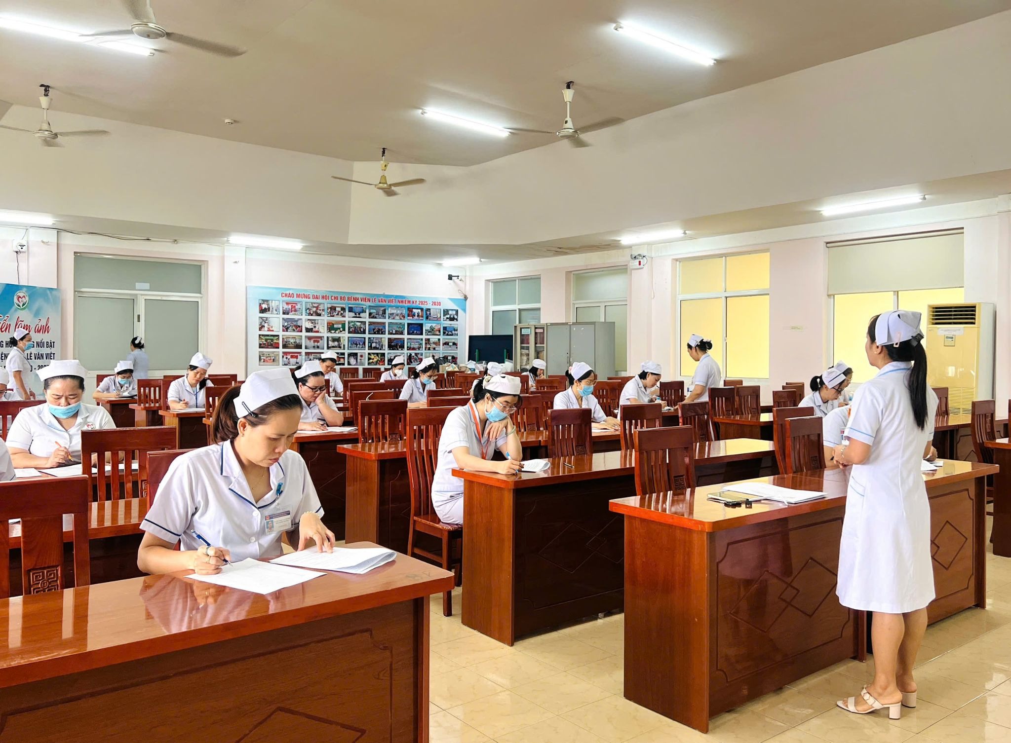 Tham gia kỳ kiểm tra có 25 cử nhân điều dưỡng trình độ đại học, trong đó có 10 điều dưỡng đến từ các Trạm Y tế trên địa bàn, cho thấy sự gắn kết chặt chẽ trong công tác đào tạo và hỗ trợ chuyên môn giữa bệnh viện và y tế cơ sở sau khi triển khai ký kết hợp tác.