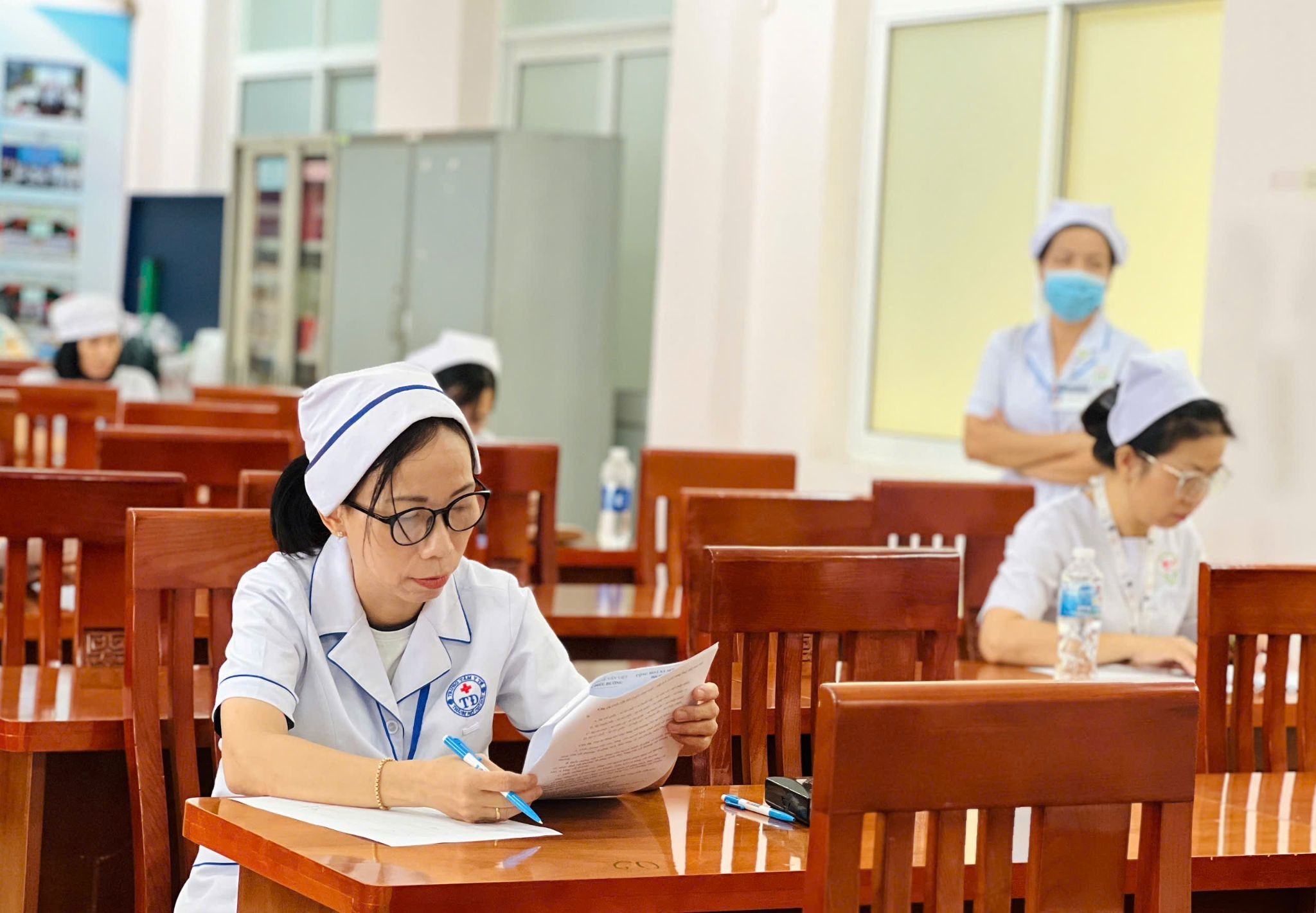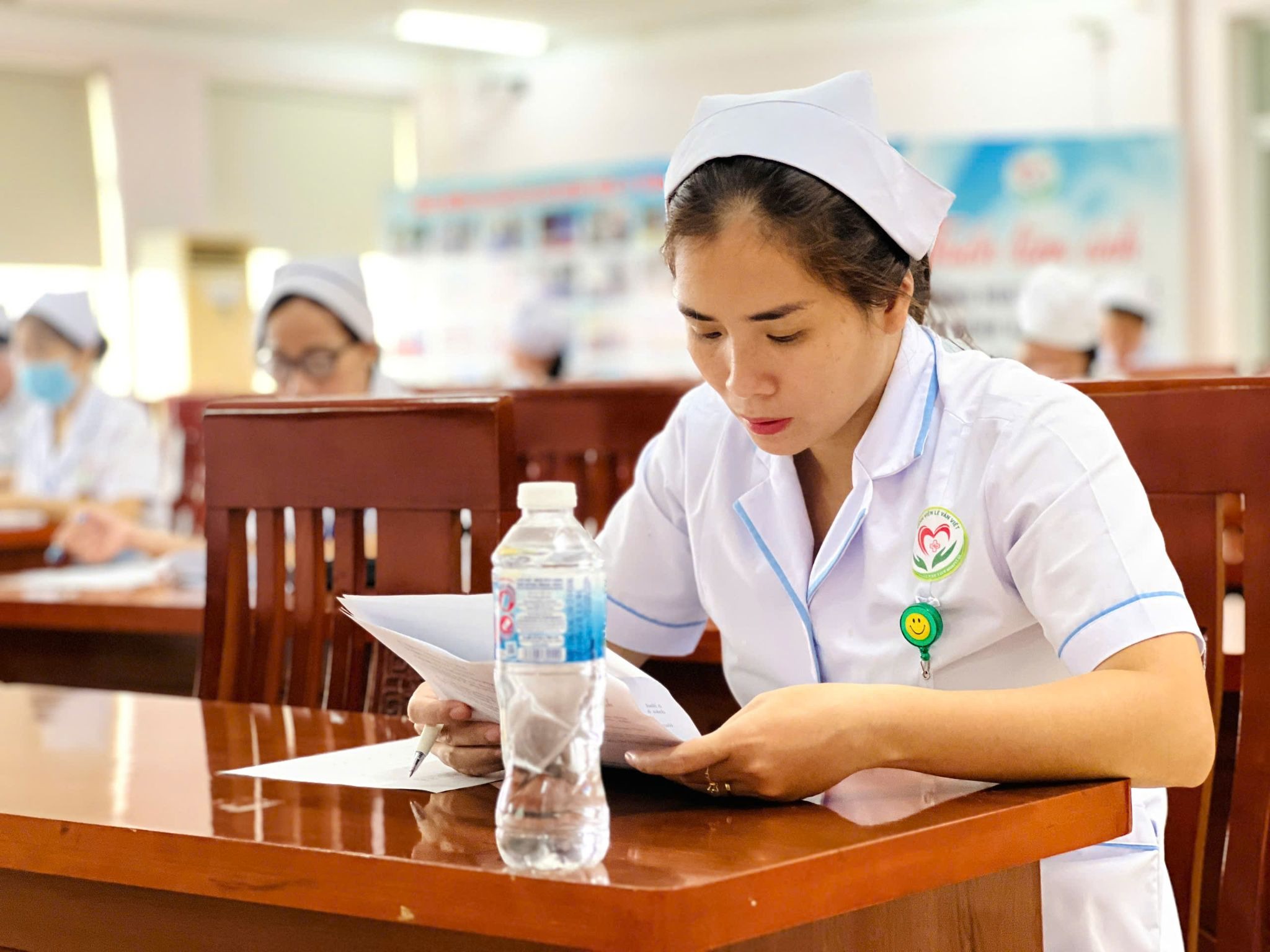 Điều dưỡng đến từ các Trạm Y tế tham gia kỳ kiểm tra, thể hiện sự chủ động nâng cao năng lực chuyên môn tại tuyến cơ sở.